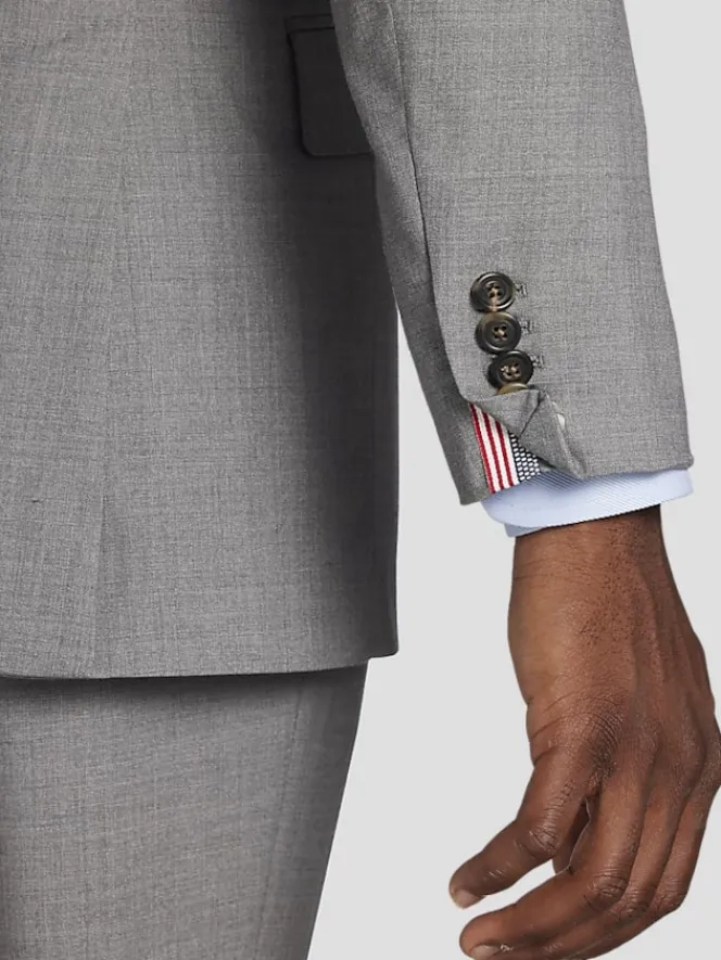 Enhance your dress-wear wardrobe with this impressive suit from Joseph Abboud. The jacket is detailed with a notch lapel, flapped pockets, and a two-button closure, while the pants feature a smooth, flat-front. Tailored with a trim, Modern Fit, the solid styling allows it to easily mix and match with a wide array of your dress shirts, ties, and upscale accessories. This suit has a 6″ drop. “Drop” is the difference between the size of jacket & pants. For example: a 38R jacket includes a 32W pant. Click on our size chart above for more sizes and details.