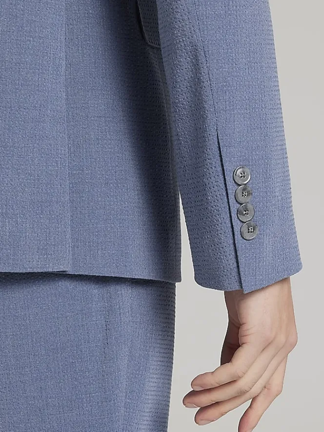 If your style motto is “effortless excellence,” this seersucker suit jacket is heard loud and clear. Lightweight and breathable, it keeps things cool while you’re winning at life. Perfect for everything from sophisticated soires to business casual Fridays, it pairs with slacks or jeans for dressed-up ease. The slim fit adds modern flair, while the chambray-blue tone keeps things understated yet polished. Bonus points for being part of a suit separates, because nothing says custom like mix and match. Make it your go-to for events that demand quiet luxury. Imported and styled to impress. Dress shoes optional, confidence mandatory.