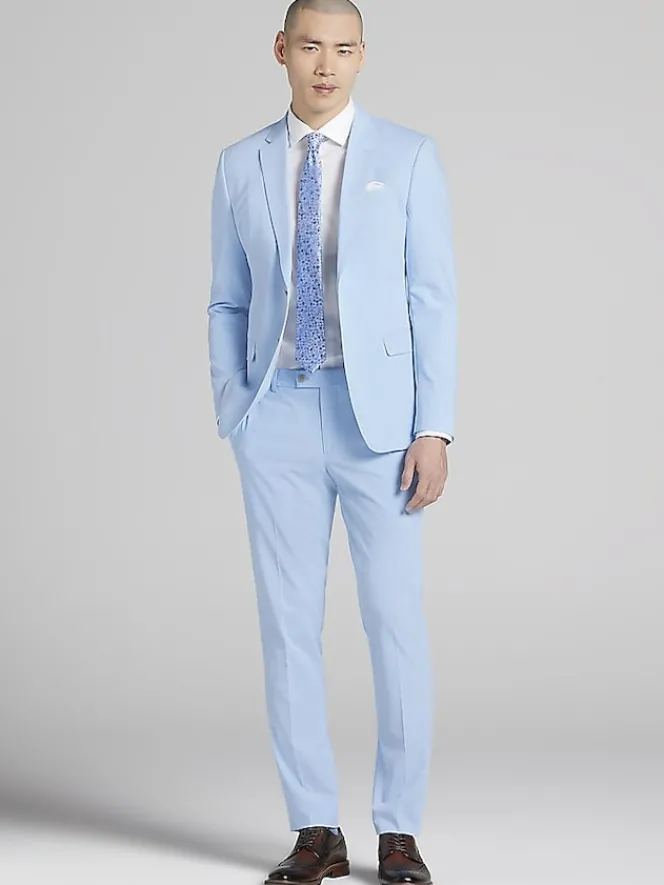 Fresh, sleek, and undeniably sharp, this sky-blue suit jacket is ready to be your style MVP. The skinny fit creates a tailored silhouette that screams confidence, while the minimalist, solid design keeps things modern and versatile. Perfect for prom, homecoming, or any event where you want to turn heads without trying too hard. Finished with a peaked lapel and full-length sleeves for that extra formal flair, it’s a blazer that knows how to party while staying professional. Pair it with matching pants, and boom, you’re a walking style highlight. Polyester blend.