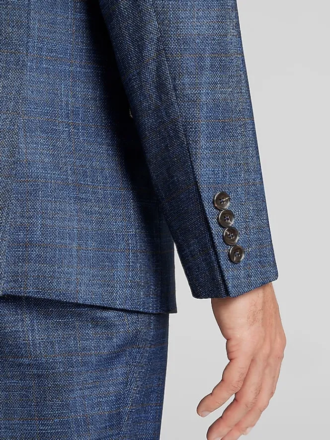 This slim fit blue check suit jacket is where confident style meets modern sophistication. Perfectly tailored to hit the sweet spot between sharp and relaxed, it pairs effortlessly with dress pants or even jeans for a business-casual twist. The sleek button-front closure and peaked lapel mean business, while its breathable material ensures comfort all day long. Whether you’re leading meetings or owning the dance floor, this jacket’s timeless plaid pattern and flattering fit will have you doing it all in standout style. Go ahead, make your markhip hits included.
