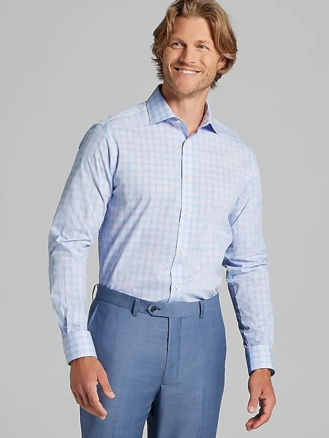 This dress shirt from Wilke Rodriguez combines sharp tailoring with timeless elegance, highlighted by a Tattersall plaid pattern. Featuring a spread collar, it offers a modern look that enhances both dress and business styles. The crisp fabric provides a clean, polished appearance, while the Slim Fit ensures a flattering silhouette. Perfect for adding a touch of pattern to your wardrobe while maintaining a sharp, refined aesthetic.