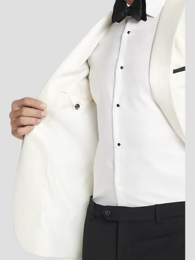 Turn heads at every black-tie affair with this chic, modern fit dinner jacket. Featuring a sleek satin shawl lapel and a hip-length cut, this two-button statement jacket doesn’t just whisper “class” – it shouts it. Whether you’re stealing the spotlight at prom or standing tall as the groom, this jacket is your formal MVP. Made from a luxe 70/30 wool-poly blend, it’s as comfortable as it is dapper. Dry clean only, because looking this sharp deserves special care.