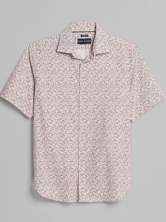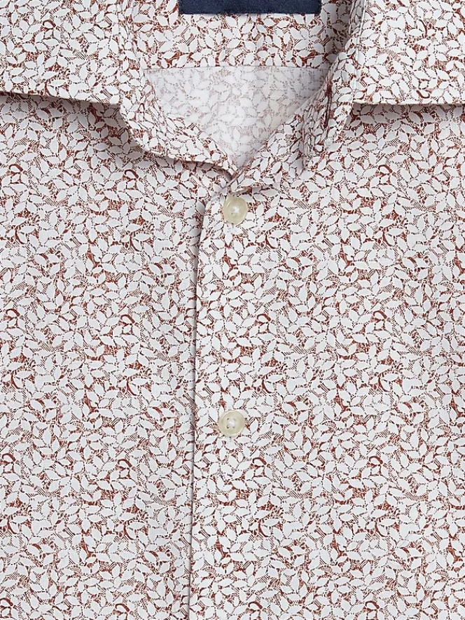A fine leave motif makes way for a cool summer on this short-sleeve camp shirt. By Joseph Abboud, it’s cut from smooth cotton and styled with a spread collar and button-down front. Tailored with a trim, Modern Fit, it looks great paired with chinos, cargos, jeans, or shorts.