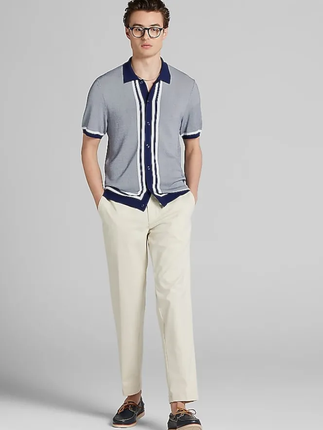 Craft a retro vibe with this neat knit button up shirt from Paisley & Gray. The short sleeves let in the summer breeze while the Slim Fit keeps it trendy. Pair it with chinos, jeans, or shorts for a look that’s effortlessly cool.