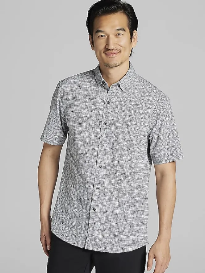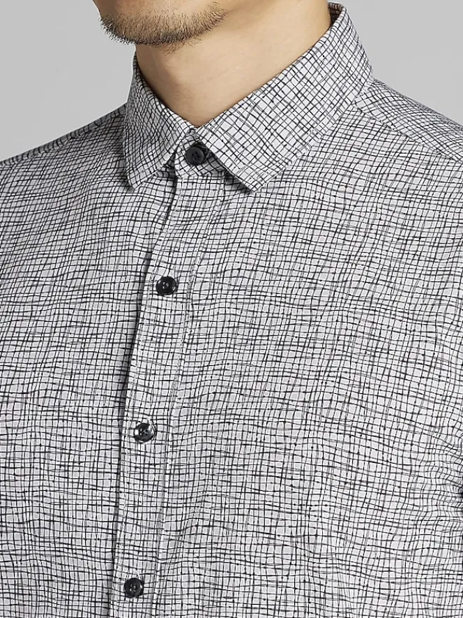 Crafted from a premium polyester blend, this shirt offers unparalleled comfort and flexibility thanks to its innovative four-way stretch fabric, moving with you throughout your day. The subtle yet sophisticated grid pattern adds a touch of contemporary flair, making it perfect for both professional settings and elevated casual wear. Experience the perfect blend of style, comfort, and versatility with this must-have addition to your wardrobe.
