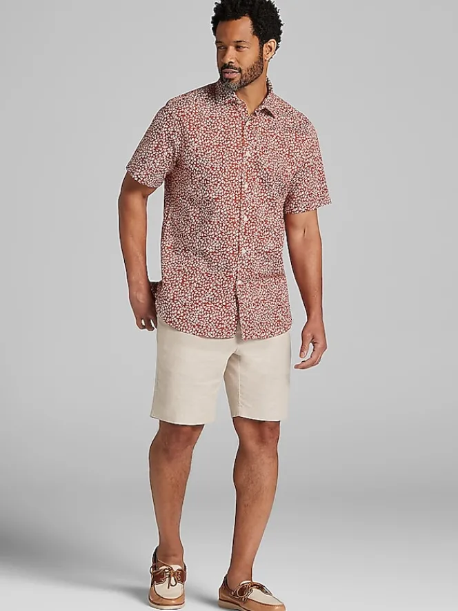 Treat yourself to the soft, smooth cotton of this short-sleeve button up shirt. From Joseph Abboud, it has a spread collar, pocketless front, and a Modern Fit. When the temperature rises, this shirt is sure to keep you looking and feeling comfortable and cool.
