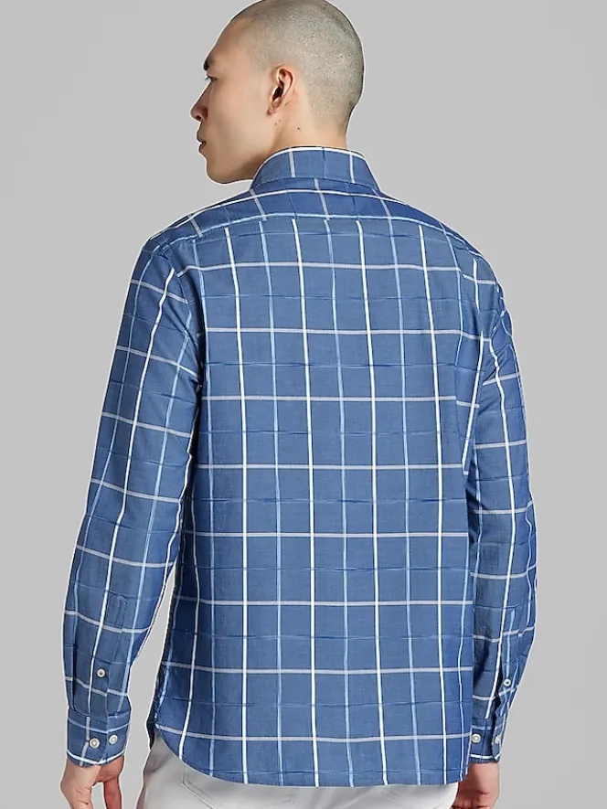 Refine your everyday style with the Joseph Abboud Modern Fit Windowpane Plaid button up Shirt. Expertly crafted from a comfortable blend of cotton and spandex, this shirt delivers both breathability and a touch of stretch for superior comfort throughout the day. The Modern Fit provides a sharp, tailored silhouette that effortlessly transitions from office to casual settings. Featuring a sophisticated windowpane plaid pattern, this shirt adds a refined touch to your wardrobe, offering a versatile piece that pairs seamlessly with dress pants or denim.