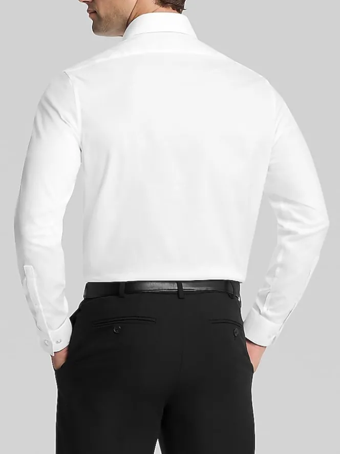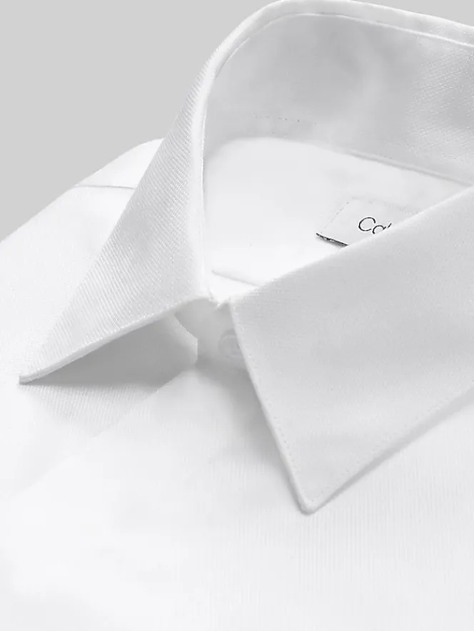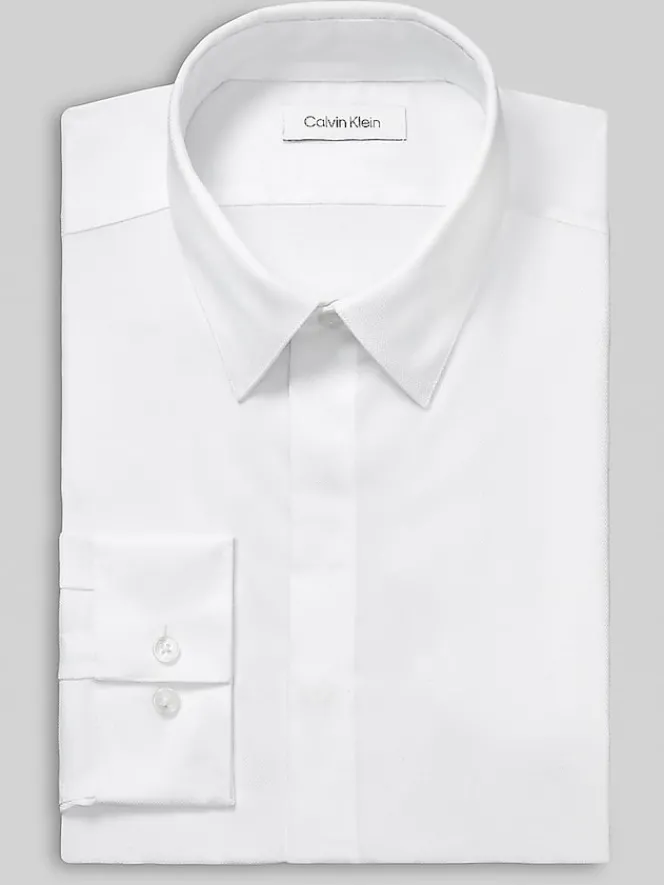 Create an impeccable look with this impressive formal shirt from Calvin Klein Steel. Its non-iron performance fabric is comprised of sumptuous cotton and stretch fibers that move with you. Detailed with a spread collar, covered placket, buttoned cuffs, and a Slim Fit, it embodies an ingenious blend of elegance and ease.