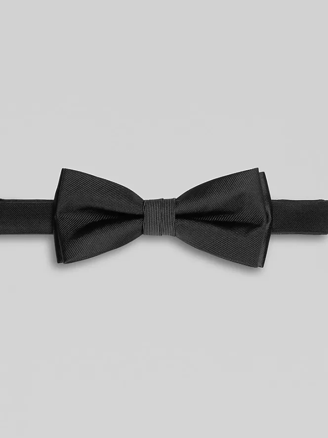 Ultra fine ribbing and double bows add depth and texture to this debonaire bow tie from Calvin Klein. It is conveniently pre-tied so you can focus less on fiddling with your look and more on having fun at your formal or upscale occasion.