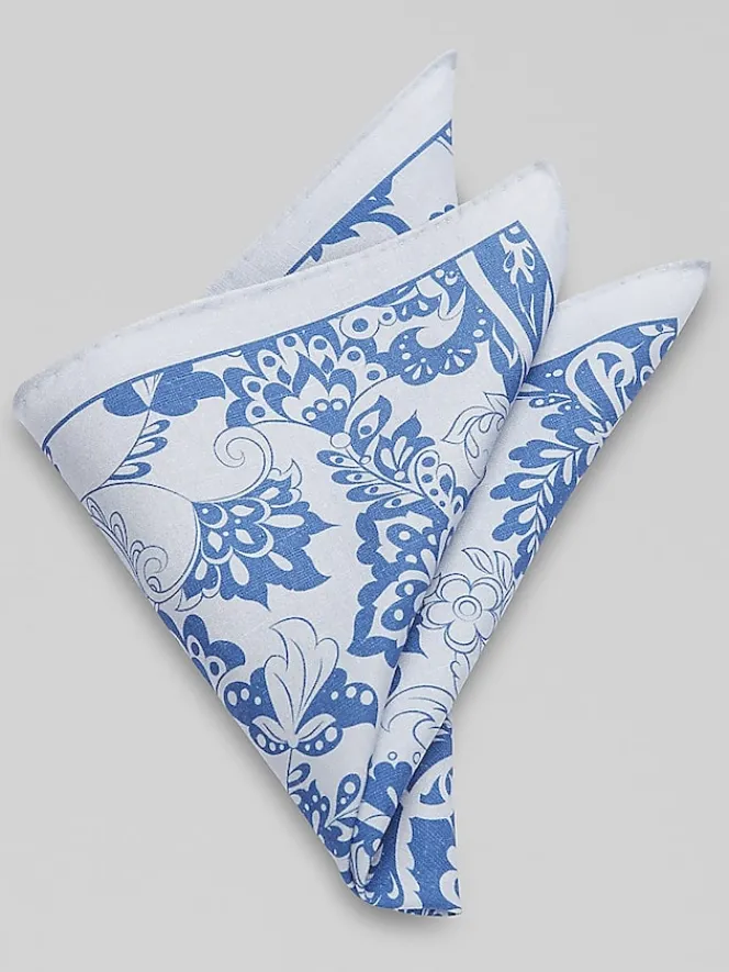 The intricate pattern of this fine pocket square combines classic paisley elements with nature-inspired details, offering a fresh and sophisticated look. The silk-linen blend provides a luxurious texture and lightweight feel, making it the perfect accessory to complement your suit or blazer. Fold it neatly or puff it for a refined finish that instantly elevates your look.