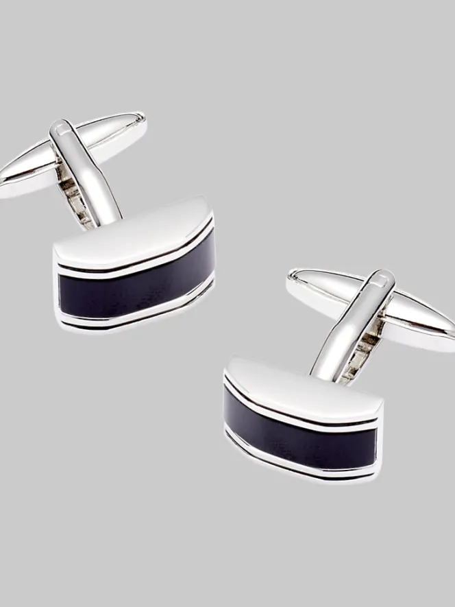 Give your suit the VIP treatment with these sleek rectangular cufflinks. Featuring a polished sterling silver finish and a bold black enamel stripe, they’re the perfect marriage of classic and contemporary. Ideal for black-tie events, business meetings, or simply stealing the spotlight at your next formal affair. The bullet-back closure makes them a snap to secure, so you can focus on turning heads, not fumbling with accessories. These cufflinks aren’t just an accent—they’re a statement. Sophistication, meet simplicity. Simplicity, meet style.