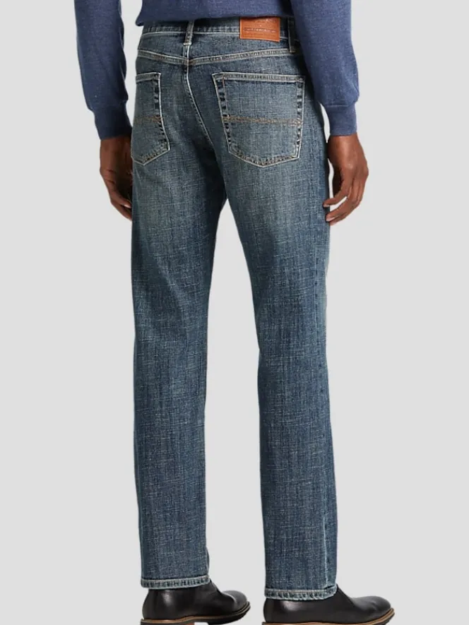 Level up your denim game with these straight-fit jeans that never try too hard. The classic straight-leg cut says, “I’ve got this,” while the whisper of whiskered fading adds just the right amount of lived-in cool. Perfect for casual Fridays or weekend adventures, these breathable, mid-rise jeans are equipped with traditional five-pocket styling and belt loops—for all those cowboy or city-stroller vibes. Zip-fly closure ensures a no-fuss fit every time. Rugged yet refined, they’re the ultimate jeans for the guy who’s equal parts laid-back and on point. Lace up some boots or keep it sneaker-casual—you’ll look great either way.