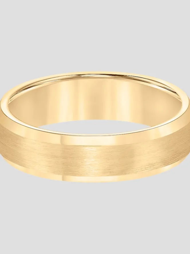 Understated but far from ordinary. This tungsten carbide wedding band is the ultimate balance of sleek and strong, with a satin-finish center and beveled edges adding just the right touch of elegance. Its comfortable fit stays with you through early coffee runs, late-night toasts, and everything in between. Toss in a gold-tone finish, and you’ve got a bold, minimalist look that speaks volumes without saying a word. Because commitment should feel as good as it looks.