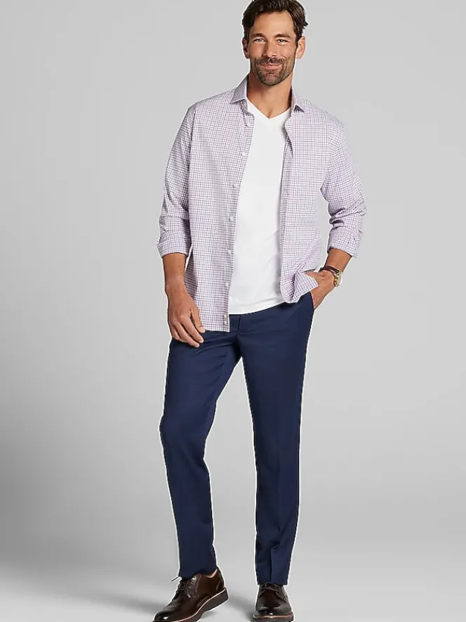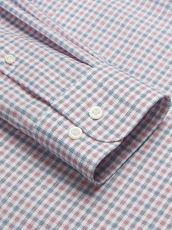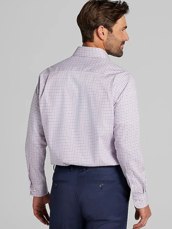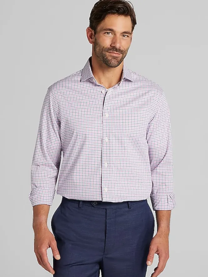 Featuring a dynamic track tattersall pattern, this dress shirt offers a fresh take on classic check styling. Made from a comfortable cotton blend with a hint of stretch, it ensures all-day comfort and flexibility. The spread collar adds a sharp, refined touch, allowing it to be easily paired with a tie for a formal look or worn open for a more relaxed, smart-casual appearance.