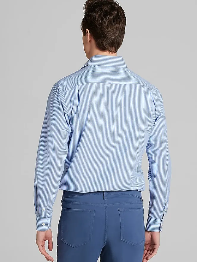 With clean, refined stripes and a modern Slim Fit, this dress shirt delivers timeless style with a fresh update. Made from a comfortable cotton blend, it’s lightweight and easy to wear from office hours to after hours. The spread collar adds versatility, pairing effortlessly with ties or standing on its own for a polished, open-collar look.