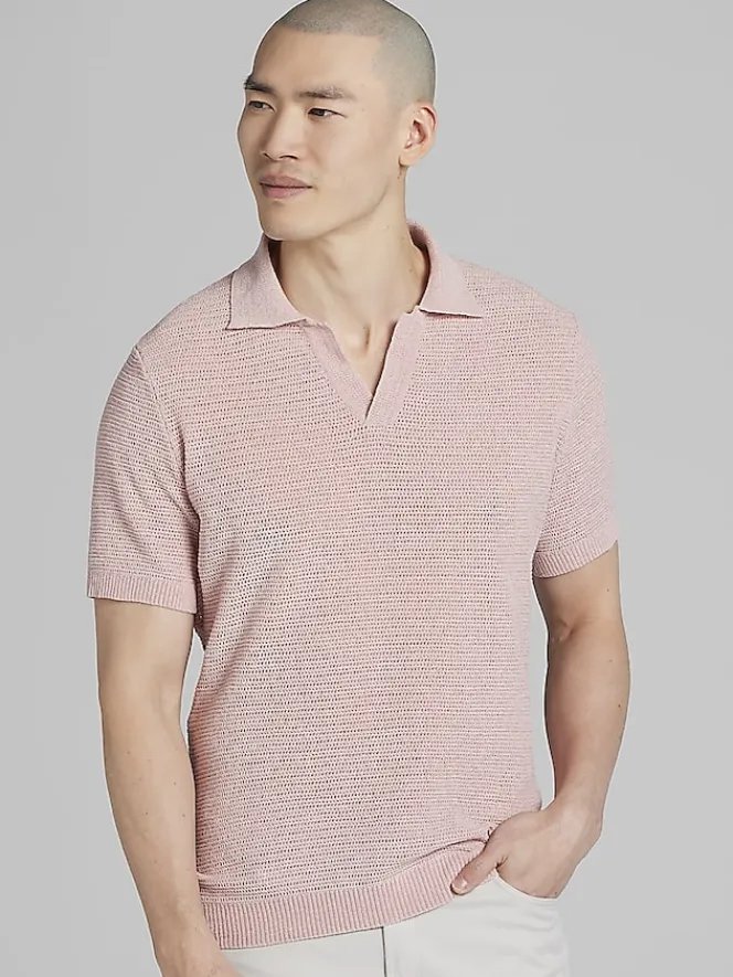 This Paisley & Gray polo redefines casual style with its ultra-soft chenille fabric and retro-meets-modern Johnny collar. An updated take on a classic polo, it has a luxurious texture with a subtle sheen. Whether paired with tailored trousers for a polished look or dressed down with jeans, this versatile piece delivers effortless on-trend style.