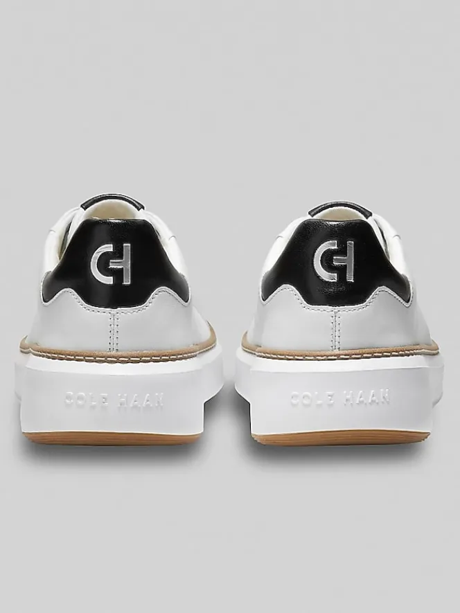 Classic court style meets modern comfort in these sneakers from Cole Haan. Crafted from premium leather, they offer both durability and a timeless aesthetic. The GrandFOAM midsole has exceptional cushioning and impact absorption, ensuring all-day comfort. A memory foam sockliner provides an extra layer of plushness, while the anatomical footbed offers outstanding fit and support. The sturdy EVA outsole with rubber toe and heel pods adds reliable traction for any activity.
