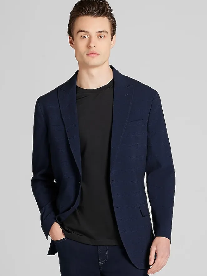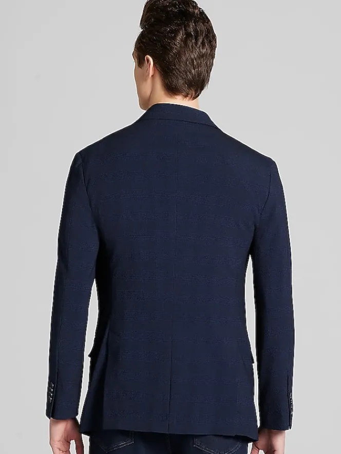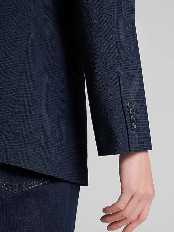 Ready to wear for spring and summer occasions, this peak-lapel sport coat is clad in classic, plaid seersucker. Unlined for optimal airflow and mobility, it’s styled with side vents, flapped pockets, and a trim, Modern Fit. Dress it up with slacks and Oxfords or create a sharp, casual look by pairing it with chinos, shorts, or denim.