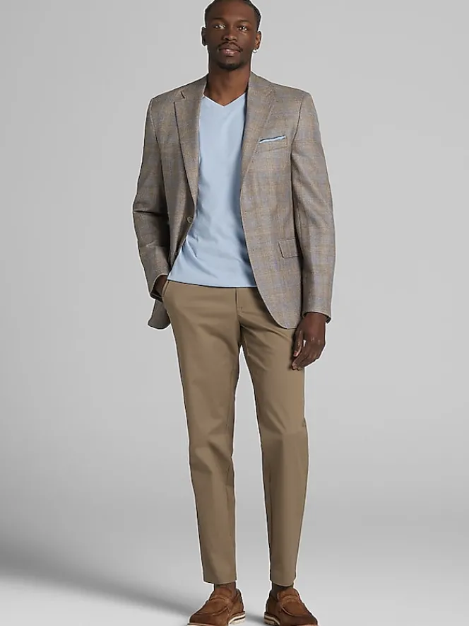Comprised of rich wool, fine silk, and breathable linen fibers, this handsome sport coat is patterned with a snazzy plaid. Classically tailored and detailed with a notch lapel, it offers versatility, enduring style, and all-day comfort.