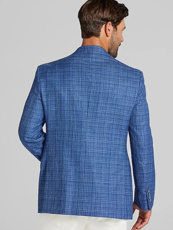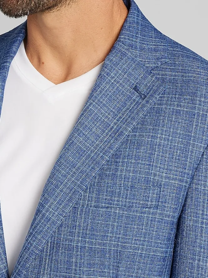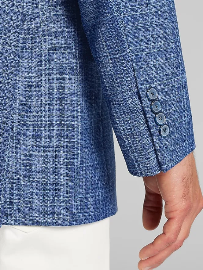 Refine your wardrobe with this Joseph Abboud sport coat, made from a premium blend of wool, silk, and linen. Featuring a classic windowpane plaid pattern, it offers a sophisticated yet versatile look. The breathable fabric ensures all-day comfort, making it a perfect choice for professional settings or elevated casual occasions.