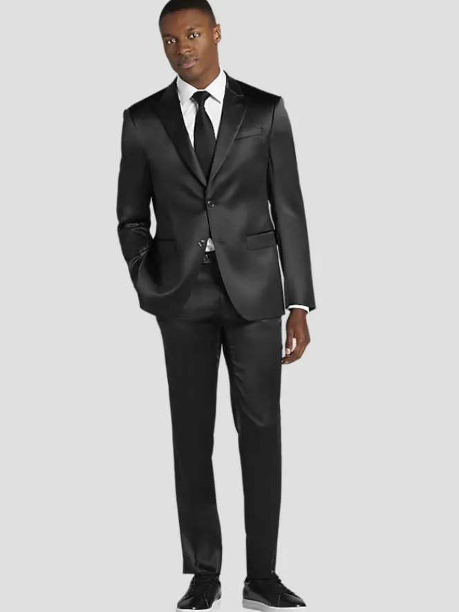 Designed with a sharp peak lapel and a Modern Fit, this jacket exudes sophistication and confidence. Its subtle sheen adds a touch of elegance, making it perfect for formal events, weddings, or special occasions. As part of a suit separates collection, it allows for versatile styling with a matching or contrasting vest and pants to create a personalized, polished lookno alterations required.