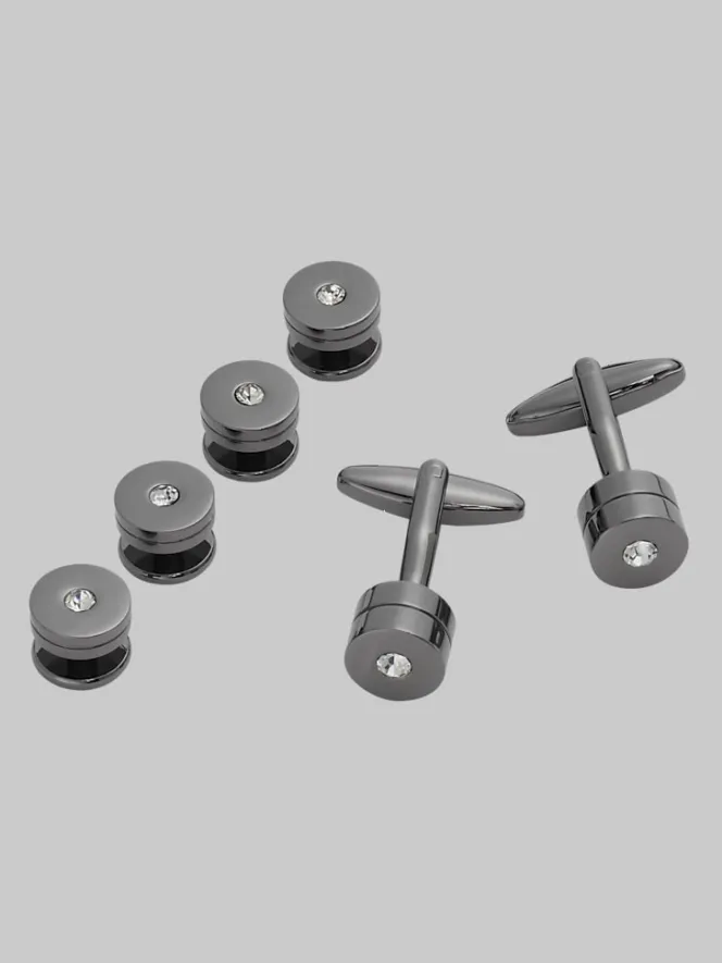 These Crystal Cylinder Cufflinks & Studs are the ultimate power move for your suit game. Sleek gunmetal meets translucent crystal for a combo that says classic with a hint of daring. Perfect for homecoming, work, or anywhere you feel like turning heads. The bullet-back design makes fastening foolproof, so you’re polished in seconds. Dress sharp, but make it effortless with this standout set that has just the right amount of charm to make your look unforgettable. Because power dressing deserves a little sparkle, don’t you think?