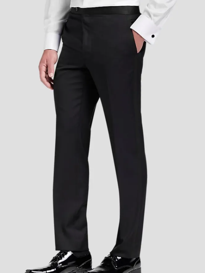 When the dress code whispers “elegant,” these modern fit wool tuxedo pants are your go-to translator. With a straight-leg silhouette and minimalist vibes, they mean business at the altar, on date night, or during that prom king moment. Belt loops, concealed fly, and simple seaming keep things sharp without trying too hard. Crafted from 100% wool, they’re the perfect mix of suave and comfortable – because looking good shouldn’t feel like work. Mid-rise charm included.