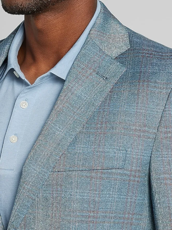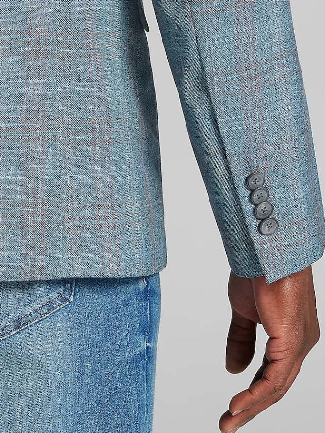Update your wardrobe with this Joseph Abboud sport coat, expertly crafted from a luxurious blend of wool, silk, and linen. The windowpane plaid pattern brings timeless sophistication, while the lightweight fabric offers comfort and breathability. Ideal for both professional settings and upscale casual events, this sport coat delivers classic style with modern versatility.