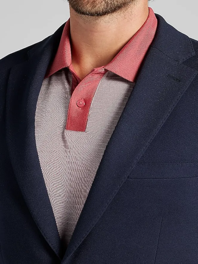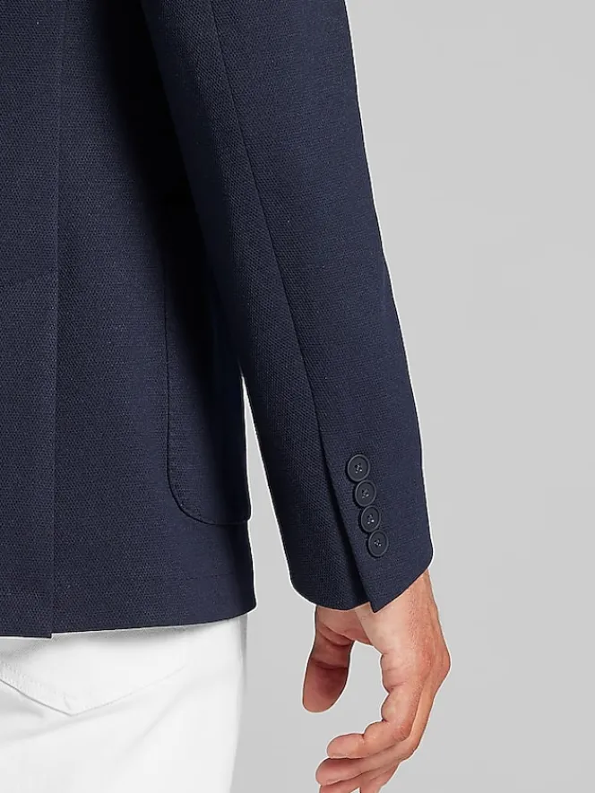 The traditional blazer gets a refresh from the fine detailing of this handsome one from Calvin Klein. Fashioned with softer construction and generous stretch for freedom of movement, it features a notch lapel, patch pockets, and a Slim Fit. Wear it with a sport shirt and slacks for a dressier ensemble, or over a T-shirt and jeans for a casually chic look.
