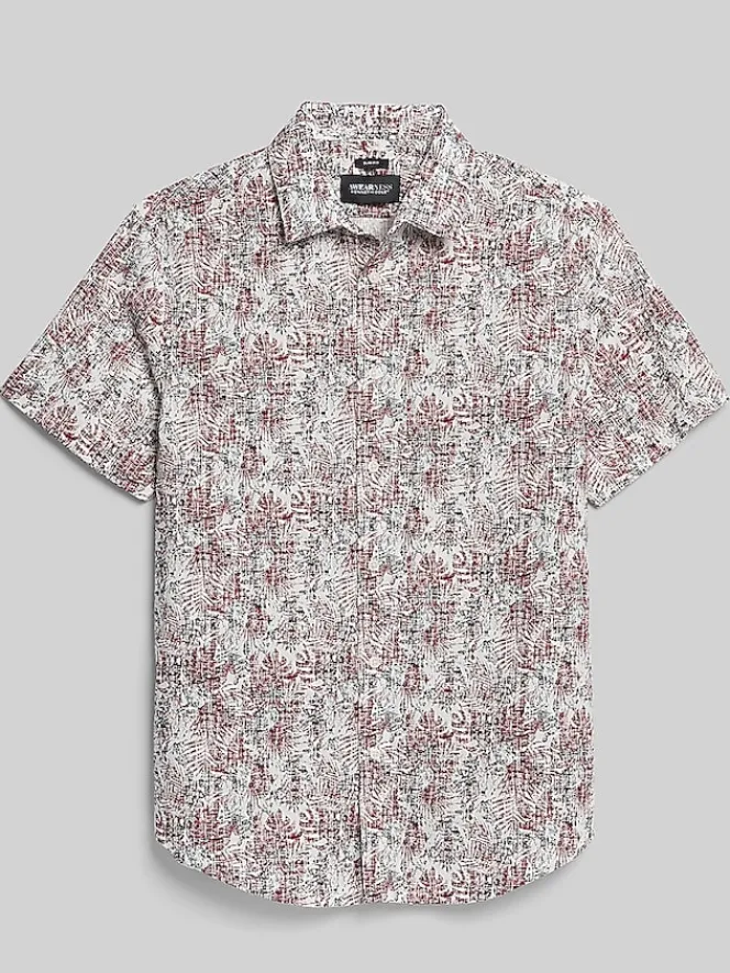 Elevate your style with this vibrant Awearness Kenneth Cole CHILLFLEX casual button up shirt. Featuring a modern palm leaf pattern that evokes a tropical escape, this short-sleeved shirt is perfect for warm weather adventures. Crafted from a luxurious blend of 75% cotton, 23% 37.5 polyester, and 2% spandex, this shirt offers exceptional comfort and breathability. The 37.5 technology actively manages moisture, keeping you cool and dry all day long. Whether you’re exploring a new city or relaxing on the beach, this stylish and functional shirt is sure to become a summer essential.