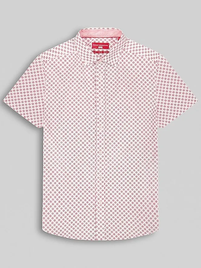 Effortless style starts with the right shirt, like this modern essential from the Report Collection. With clean lines and 4-way stretch fabric, this shirt moves with you while keeping you comfortable all day long. The tailored Modern Fit and crisp button-down collar deliver a polished look, while the mini circle life raft pattern and versatile color make it a no-brainer for work, weekends, and everything in between.