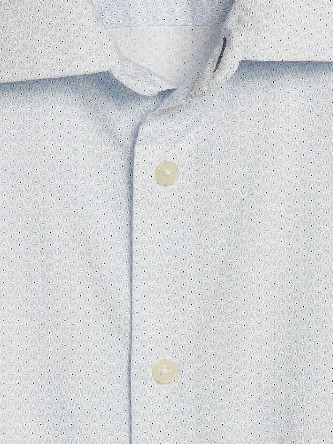 Tailored from fine cotton into a trim, Modern Fit, this casual button up shirt is ready for the workday and weekend alike. This crisp Joseph Abboud shirt is crafted with a spread collar, barrel cuffs, and a fine dot pattern for a subtle, yet intriguing look.