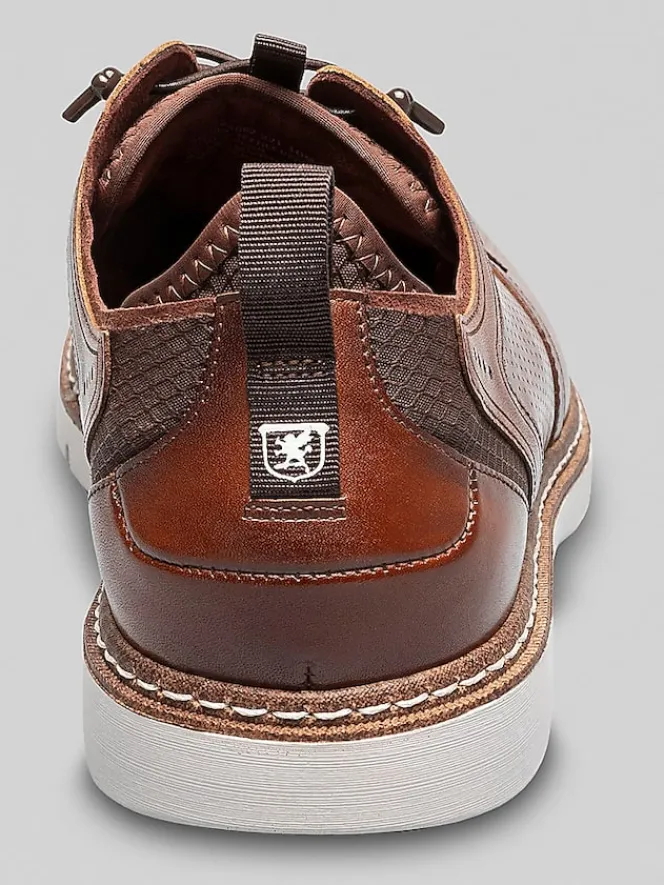 These Stacy Adams shoes are your go-to for effortless dressing. Designed with a leather and textile upper, this versatile pair features elastic laces for easy slip-on wear, a padded collar for comfort, and a lightweight EVA and rubber sole that moves with you. Finished with a breathable lining and removable FlexZone insole, the Sync keeps you in step from morning meetings to evening plans.