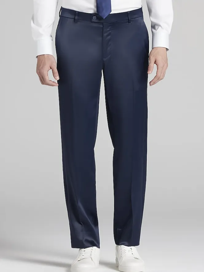 These pants are a modern choice for sharp, tailored style. Featuring a trim flat-front and a subtle sheen, they offer a polished look perfect for formal occasions or elevated evening wear. The Skinny Fit ensures a streamlined silhouette, while the suit separates design allows for customizable pairing with a matching or contrasting vest and jacket. Comfortable and stylish, they’re a go-to for the perfect fitno alterations required.