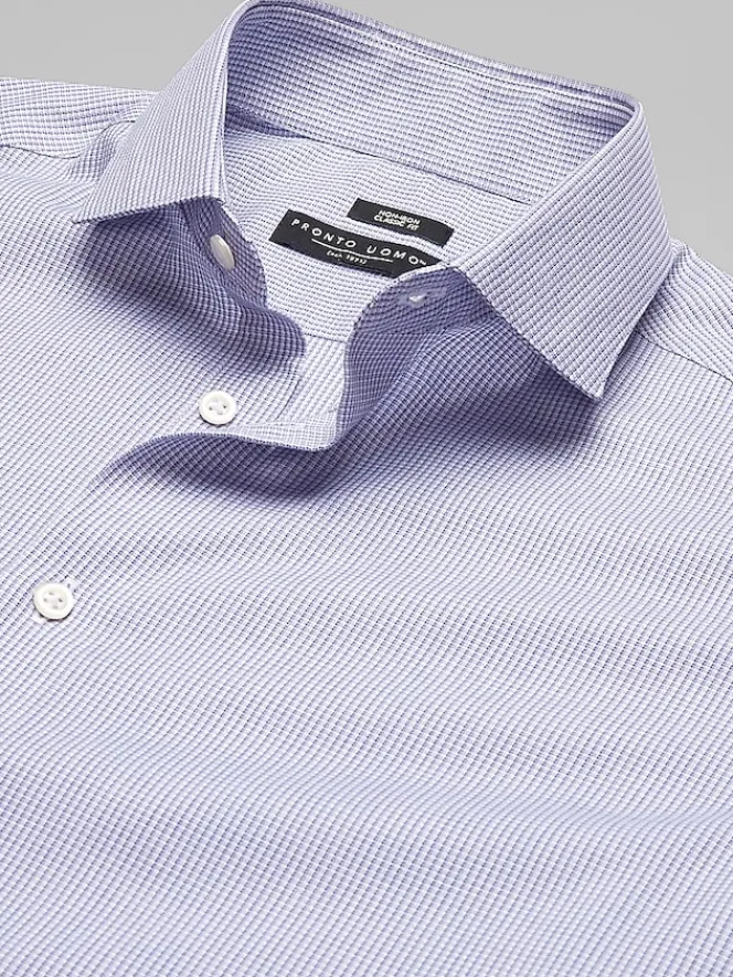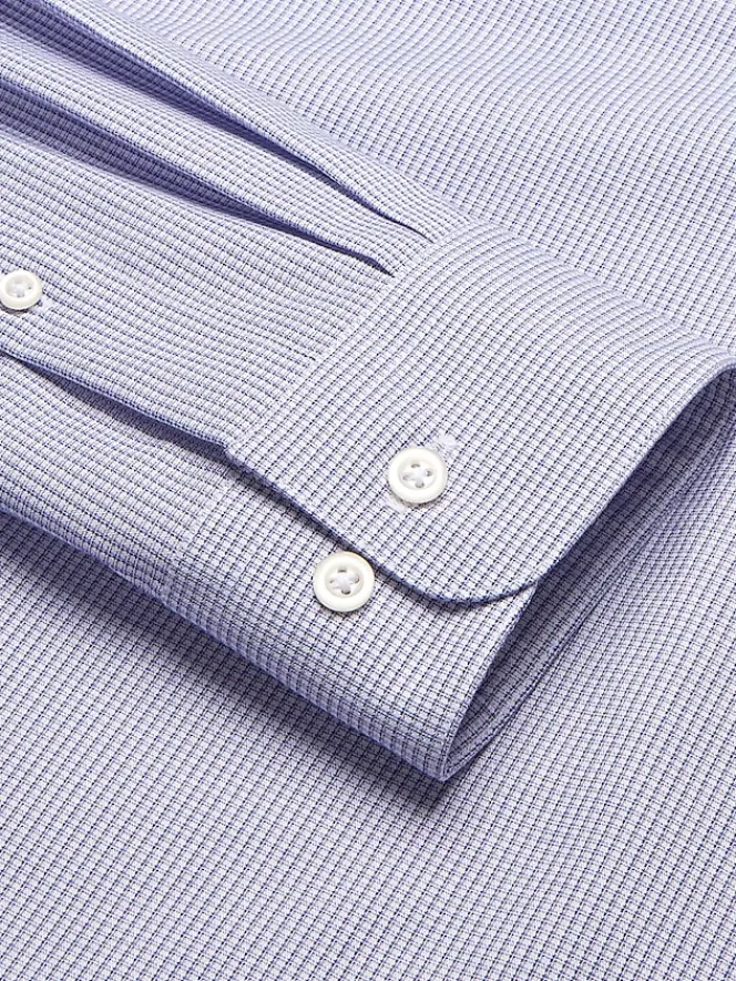 This Classic Fit dress shirt combines timeless style with modern comfort. Featuring a subtle mini grid pattern, it has a polished look that’s perfect for the office or dressier events. The fabric includes a hint of stretch, providing ease of movement and all-day comfort, making it a versatile staple for your wardrobe.