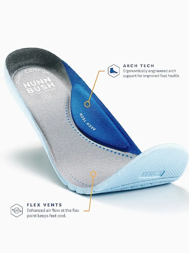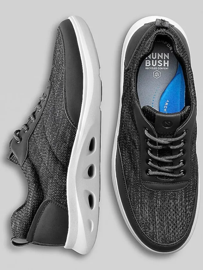 Blending modern comfort with classic style, these Nunn Bush sneakers are designed for all-day wear. The soft knit upper offers breathability and flexibility, while the moc toe design and lace-up closure maintain a refined, polished look. Featuring their Dual Comfort footbed with Arch Tech and a lightweight EVA outsole, it provides superior cushioning and shock absorption. Perfect for both work and casual outings, this shoe delivers effortless style and lasting comfort.